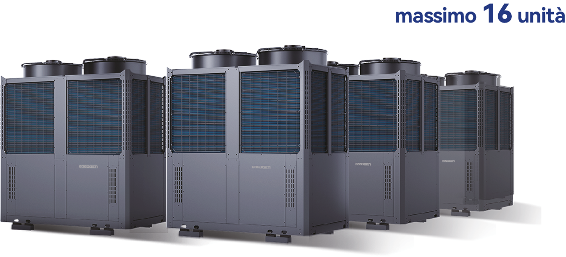 Fino a 16 unità possono funzionare insieme con un unico controller. È possibile configurare più gruppi per soddisfare le esigenze di riscaldamento e raffreddamento su larga scala.