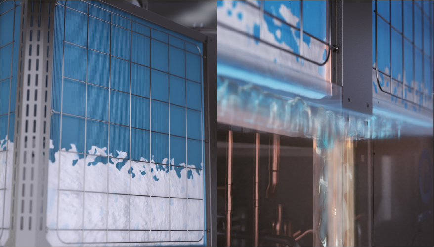 Il sistema utilizza la tecnologia di sbrinamento AI, che regola dinamicamente i parametri in base alla temperatura ambiente e allo stato di funzionamento. Avvia con precisione la modalità di sbrinamento solo quando necessario, evitando cicli inutili ed adattandosi alle condizioni termo igrometrichge del luogo di installazione.