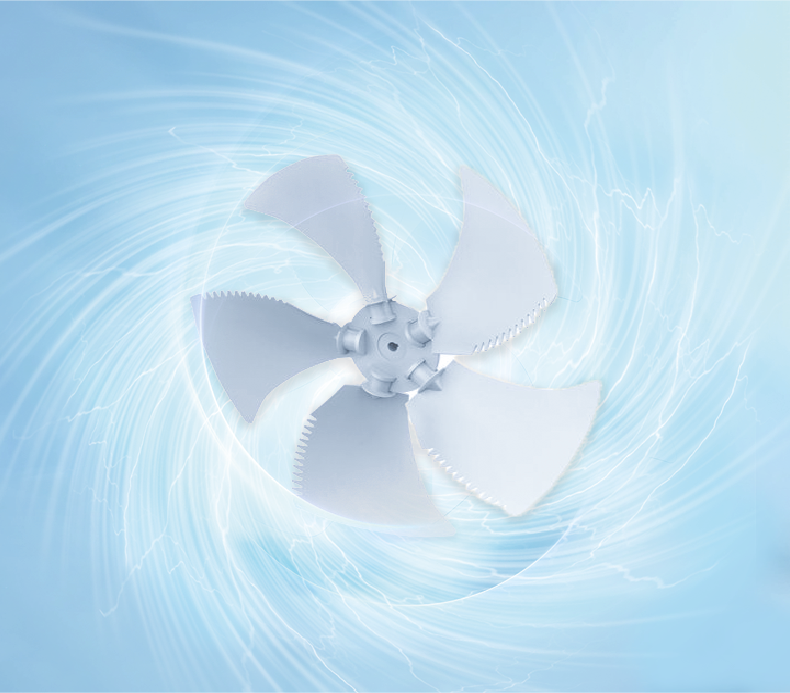 Le ampie pale del ventilatore, con profilo seghettato, migliorano l’efficienza aerodinamica riducendo al contempo la rumorosità del ventilatore.